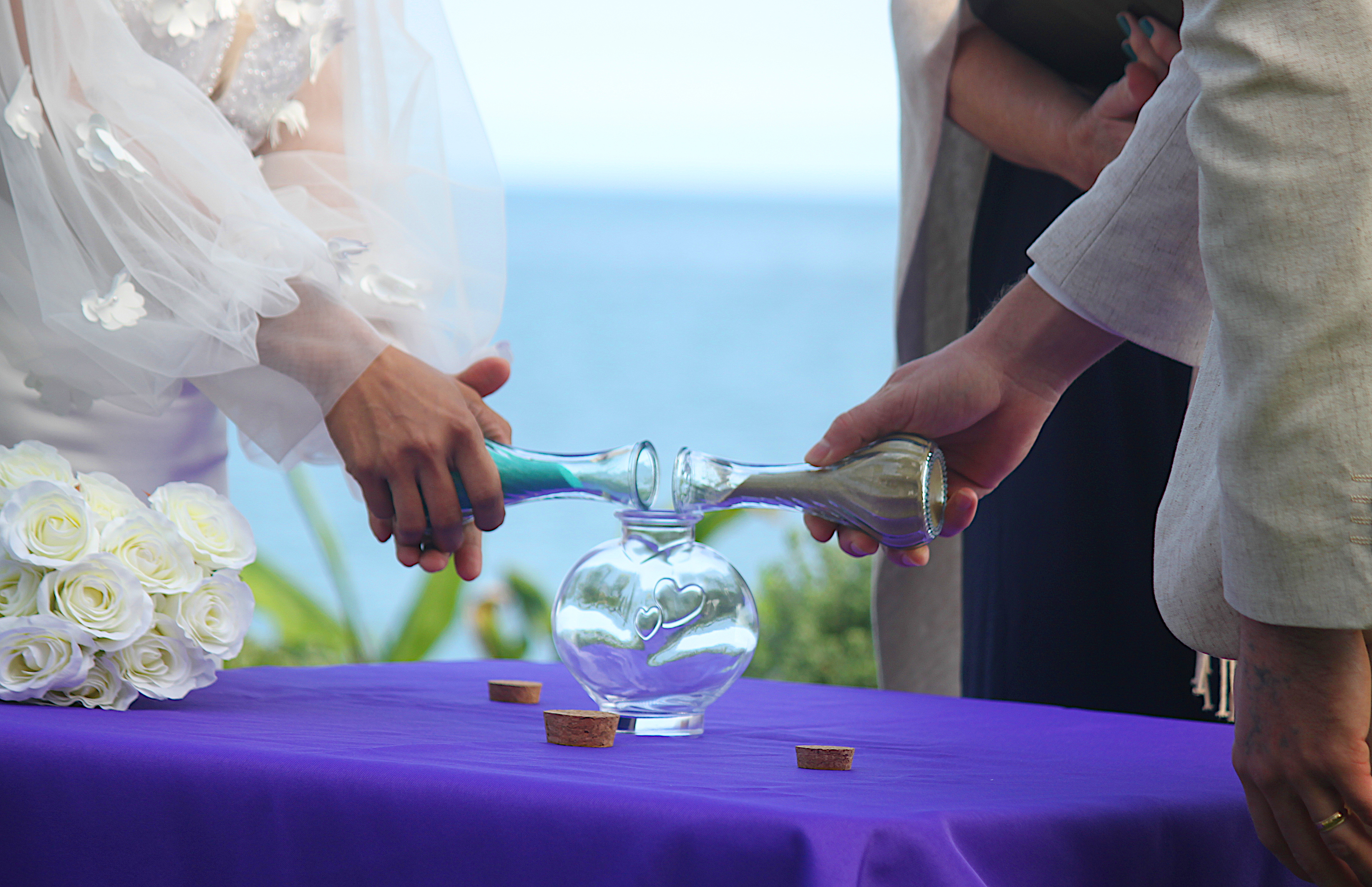Custom ceremonies, beach sand ceremonies, elopements, and vow renewals are individually created with each couples’ values and personalities in mind. Your ceremony is absolutely customized for your special event!